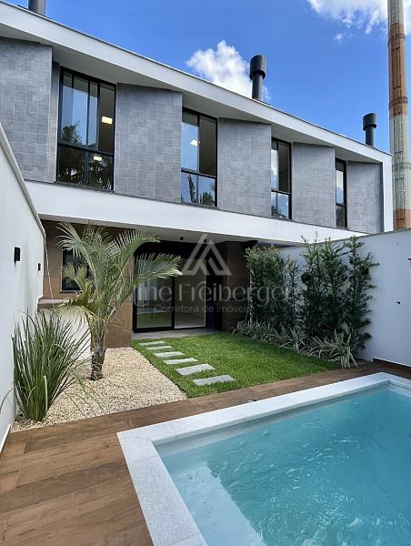 Com arquitetura contemporânea e materiais de alta qualidade, cada unidade traduz elegância. Os ambientes do térreo se destacam pelos mais de 5 metros de largura livre, integrando living, cozinha e área de festas com churrasqueira em granito e porcelanato. O lavabo refinado e a lavanderia fechada completam o conjunto, unindo estética e praticidade.